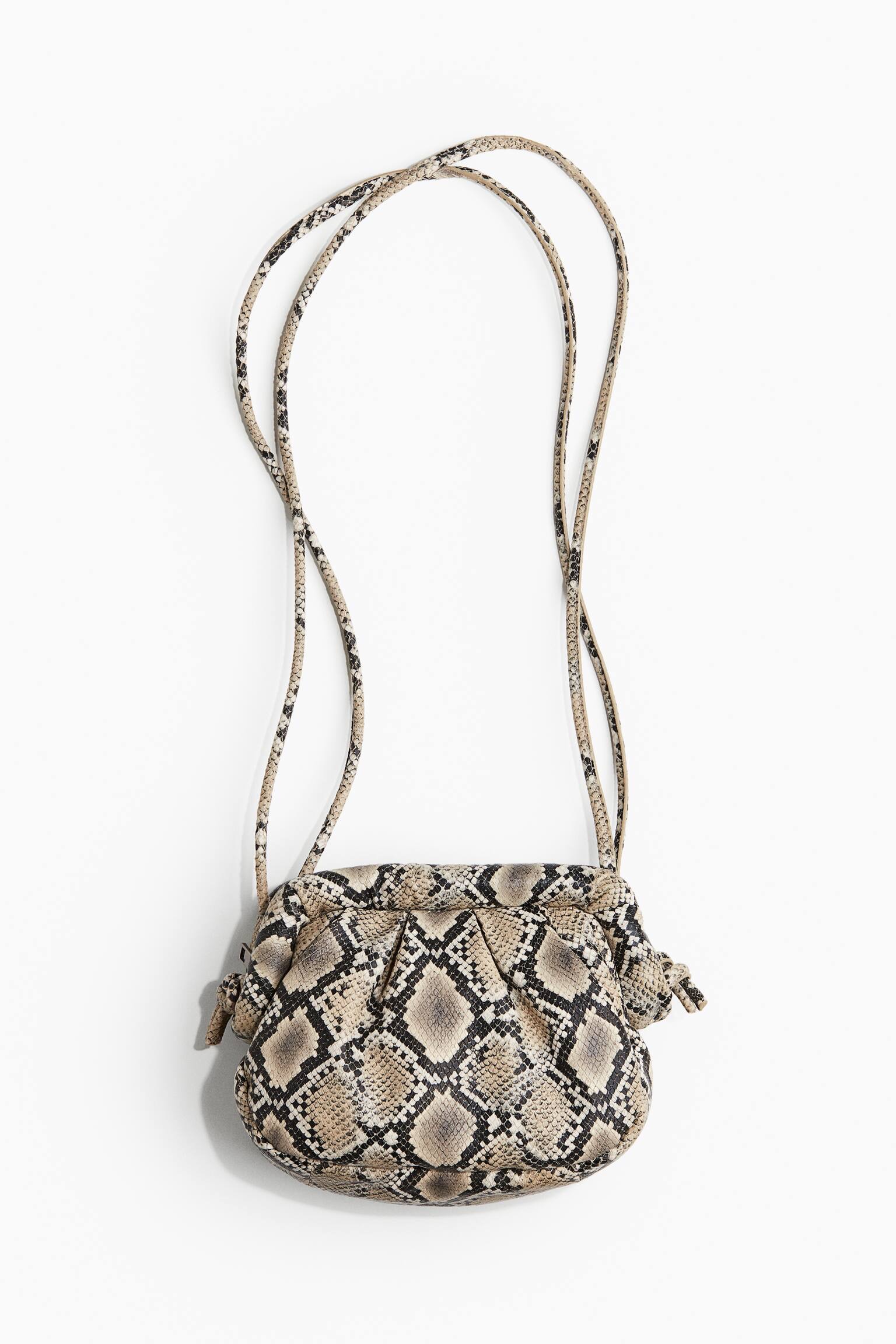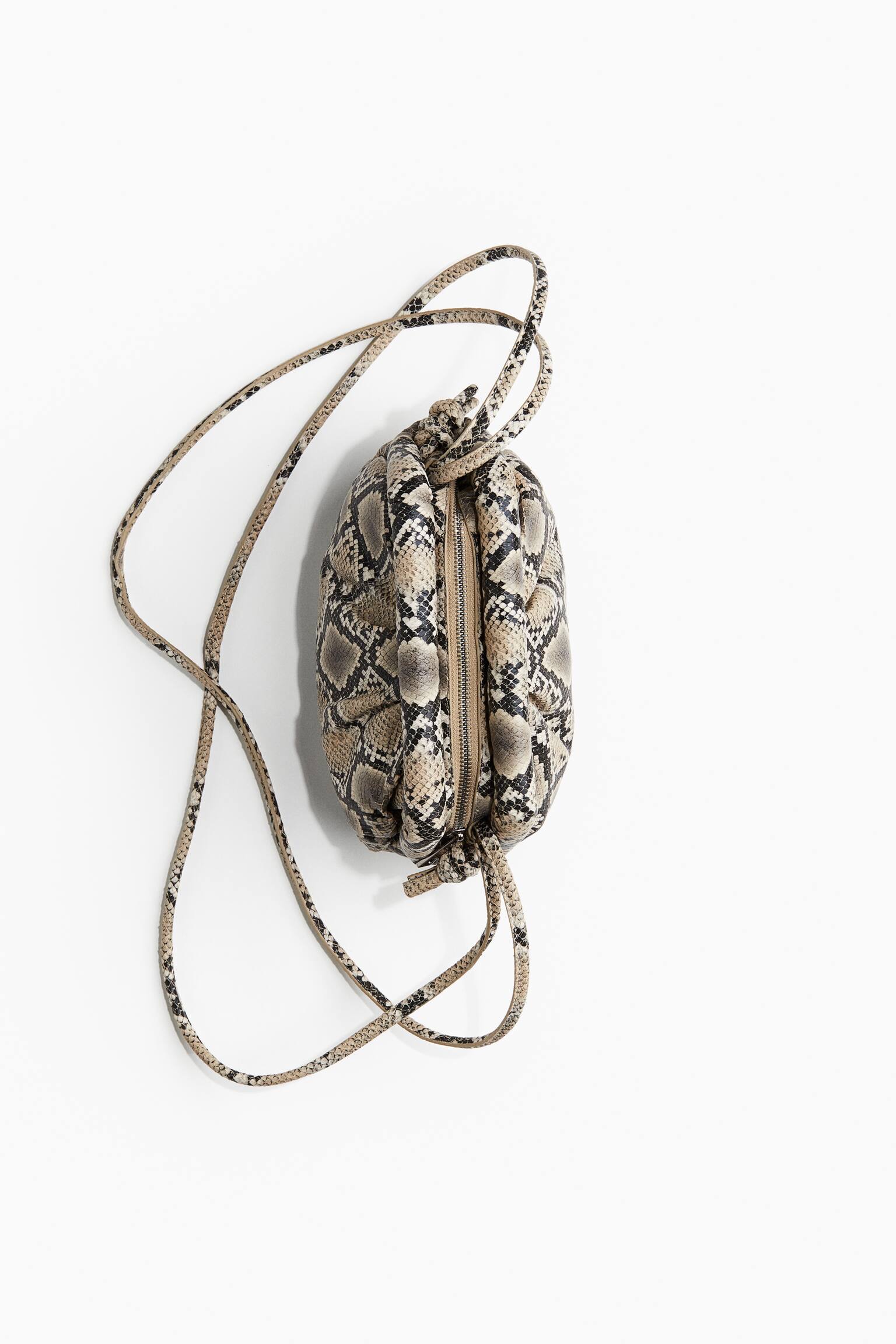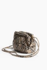 Мягкая сумка через плечо из мягкой кожи с рисунком под змеиную кожу. Застежка-молния сверху, мягкая отделка по краю и двойной ряд узких лямок. Внутреннее отделение на молнии. На подкладке.
