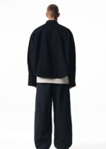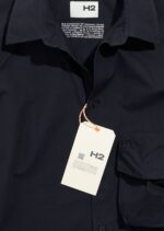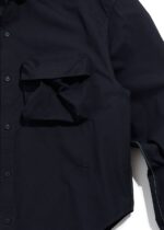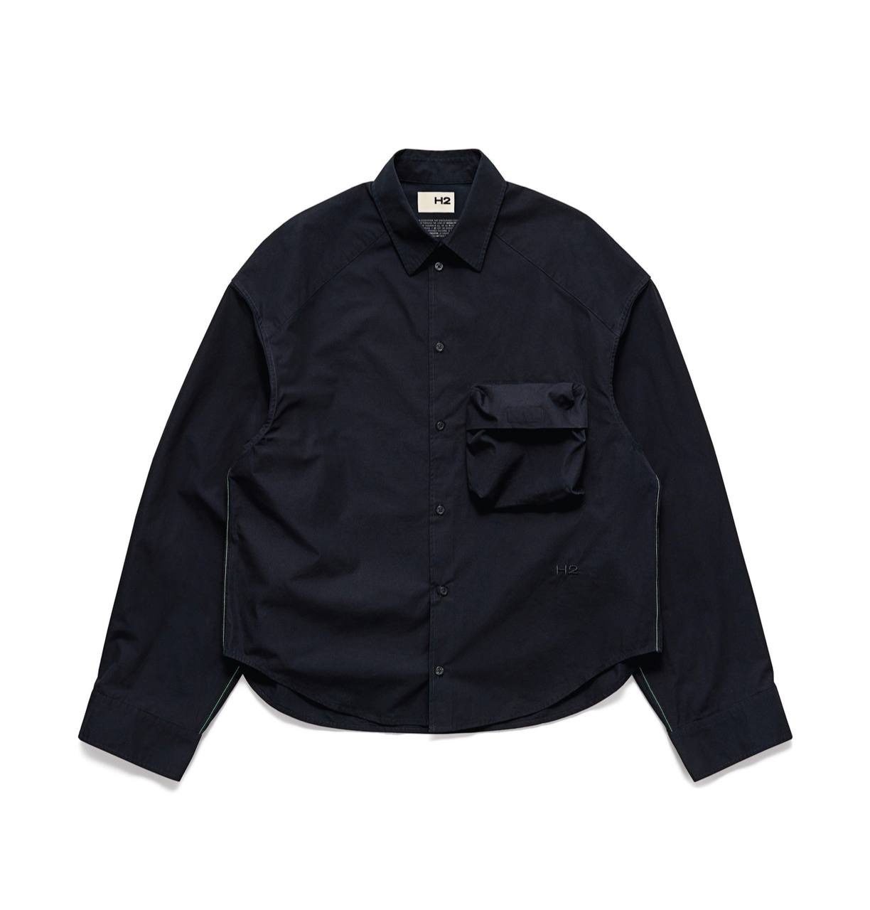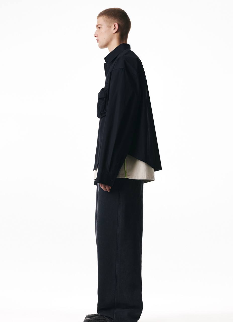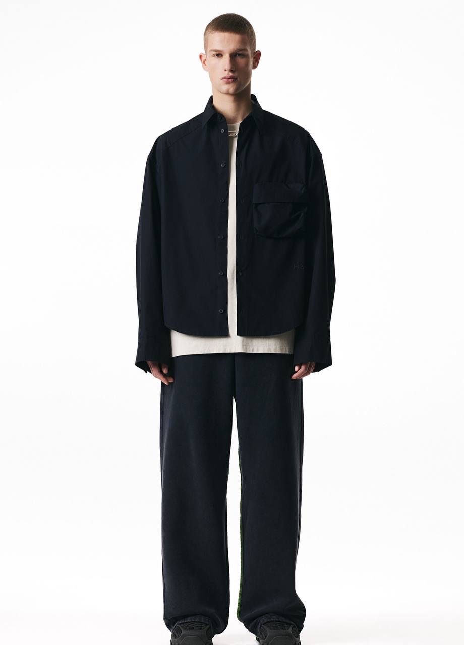 Рубашка свободного кроя из мягкой хлопковой ткани пима с отложным воротником, французским передом и кокеткой сзади. Нагрудный карман с клапаном на липучке, небольшой текстовой вышивкой спереди и швом контрастного цвета с каждой стороны. Длинные рукава с манжетами на пуговицах. Закругленный край. Модель оверсайз для мешковатого, очень свободного силуэта.