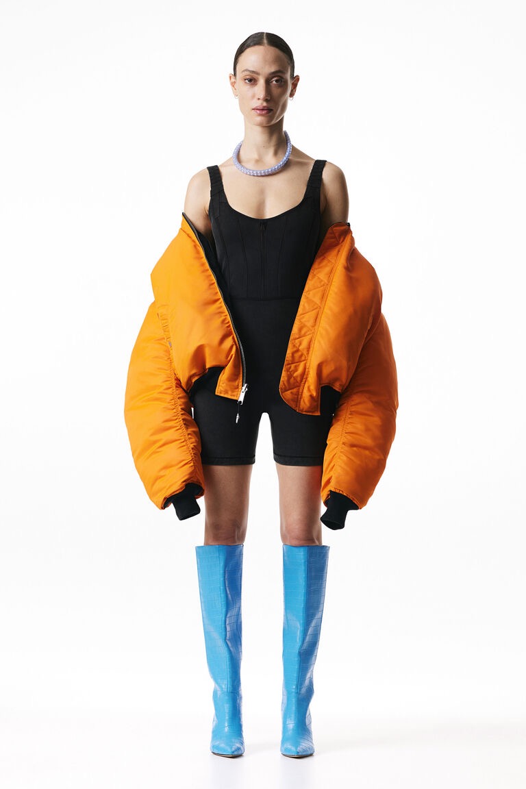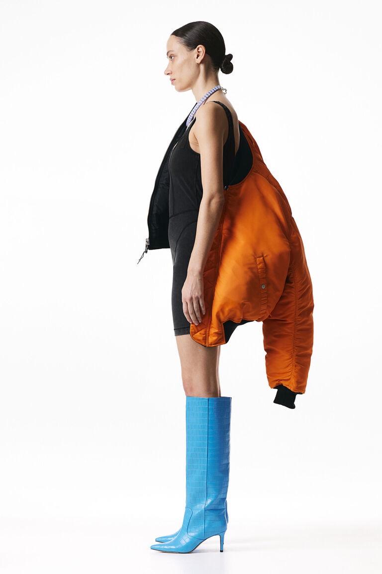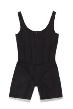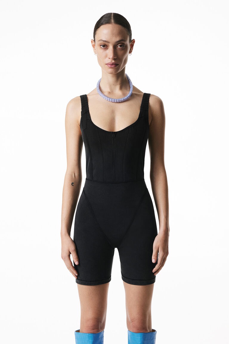 Облегающее боди из эластичного хлопкового трикотажа средней плотности с стираным эффектом. Круглый вырез горловины, мягкие бретели и потайная молния сзади.