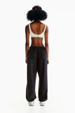 Спортивные брюки унисекс из плотного хлопкового трикотажа и контрастным внутренним швом. Эластичный пояс на шнурке, наклонные боковые карманы, один накладной карман сзади и эластичные манжеты на штанинах.