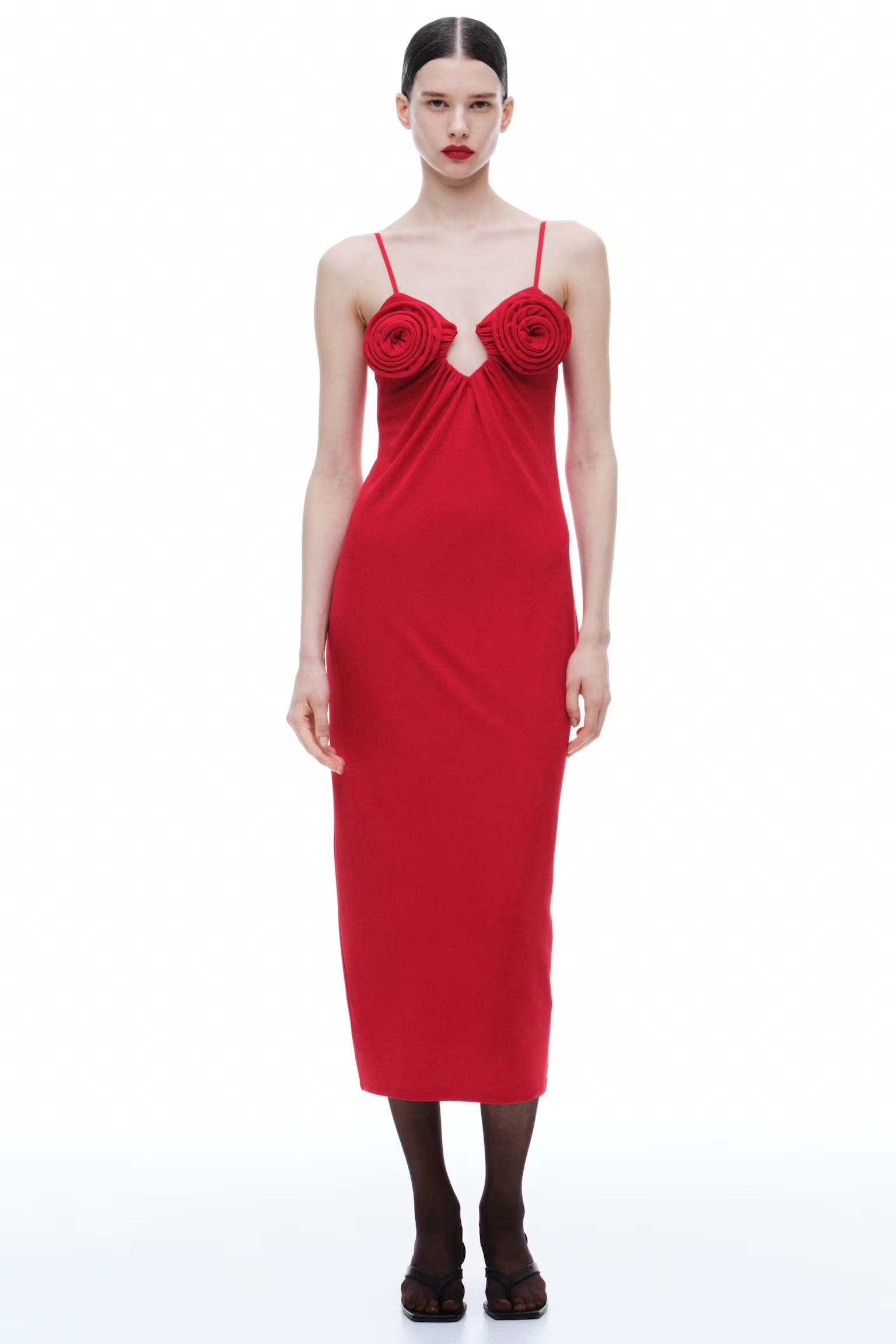 MAGDA BUTRYM H&M ROSE-APPLIQUÉD SLIP DRESS