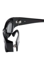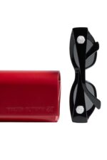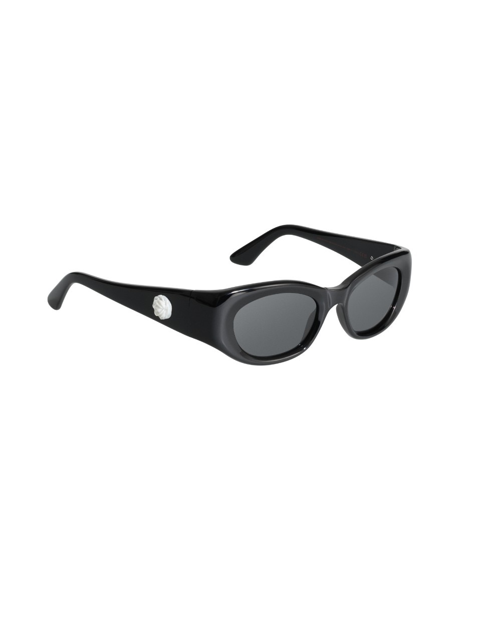 Овальные солнцезащитные очки из пластика с перламутровой пластиковой бусиной на каждой дужке с фирменным мотивом розы дизайнера. Логотип дизайнера напечатан внутри одной дужки.
